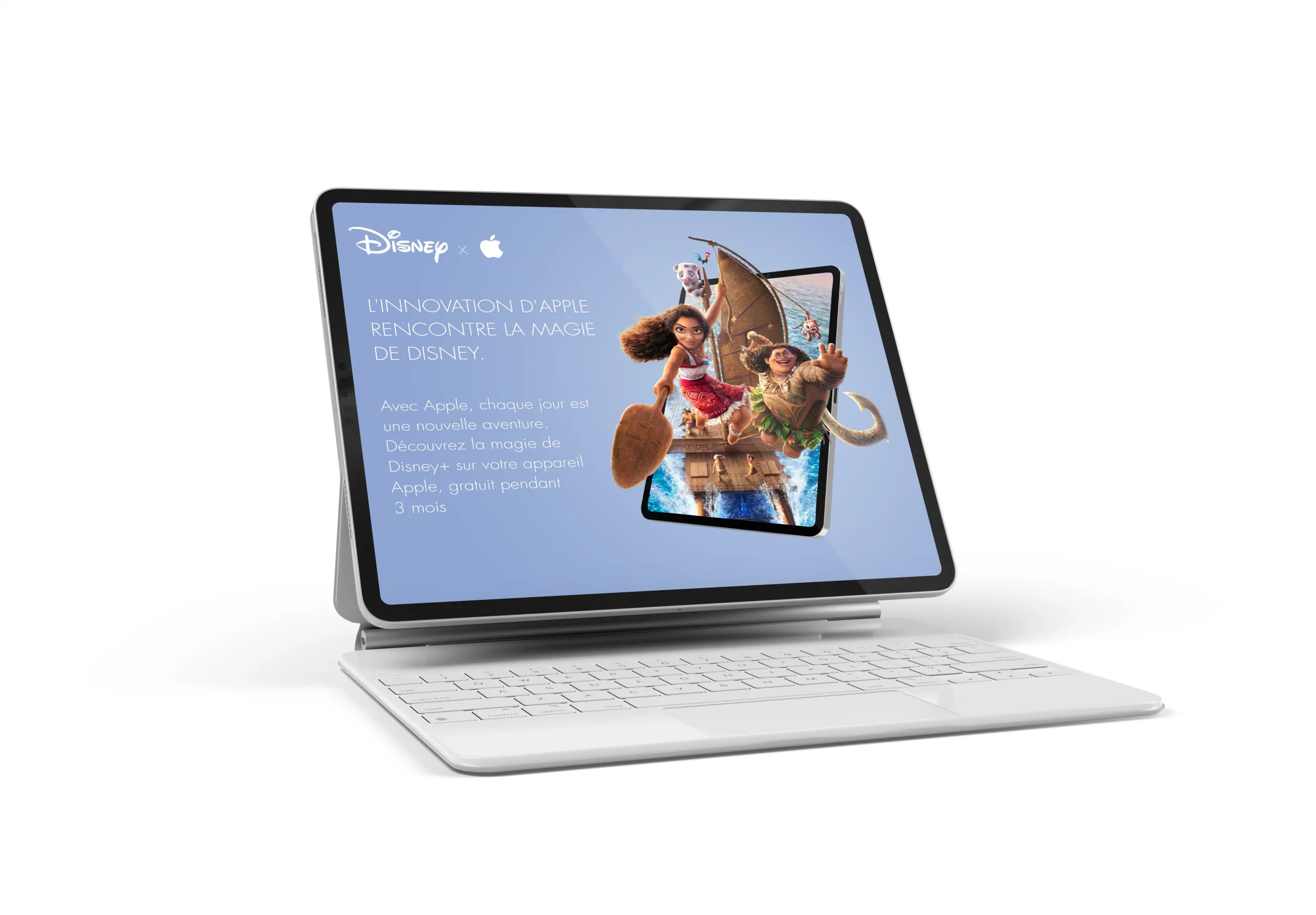 Ce projet Photoshop combine l’univers enchanteur de Disney avec l’innovation et l’élégance d’Apple. L’objectif est de fusionner la magie de l’animation avec le design minimaliste et futuriste des produits Apple